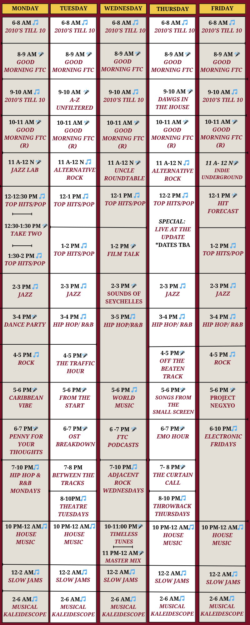 🎵= Music Hour 🎤Student Show *Updated 10/1/25